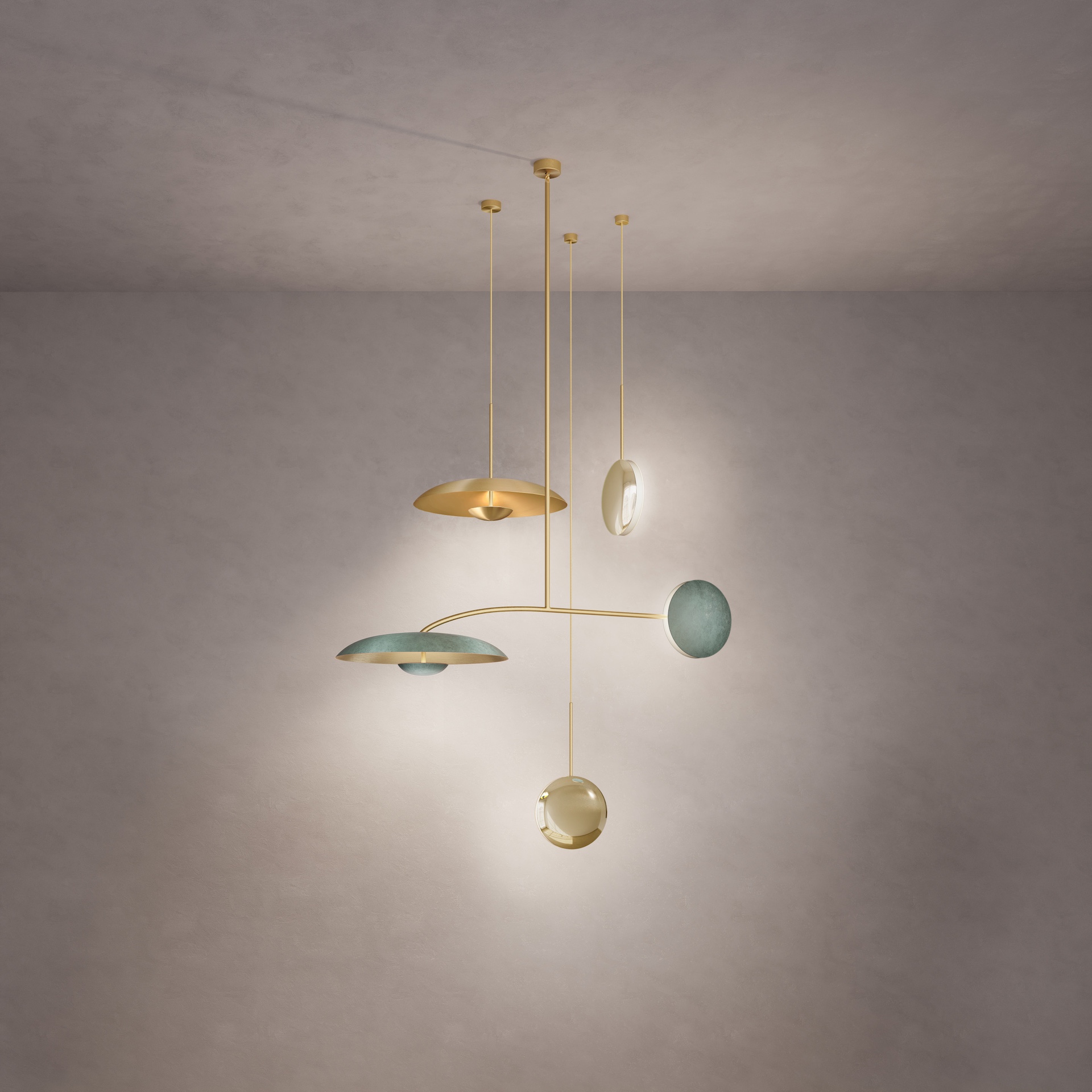 Finished in Atelier001’s signature artisan patinas, the four lighting components are harmoniously balanced to illuminate a room. This handmade lighting constellation sits elegantly in both contemporary and vintage-inspired interiors. Please note that each piece is individually handmade, therefore unique in its own way.