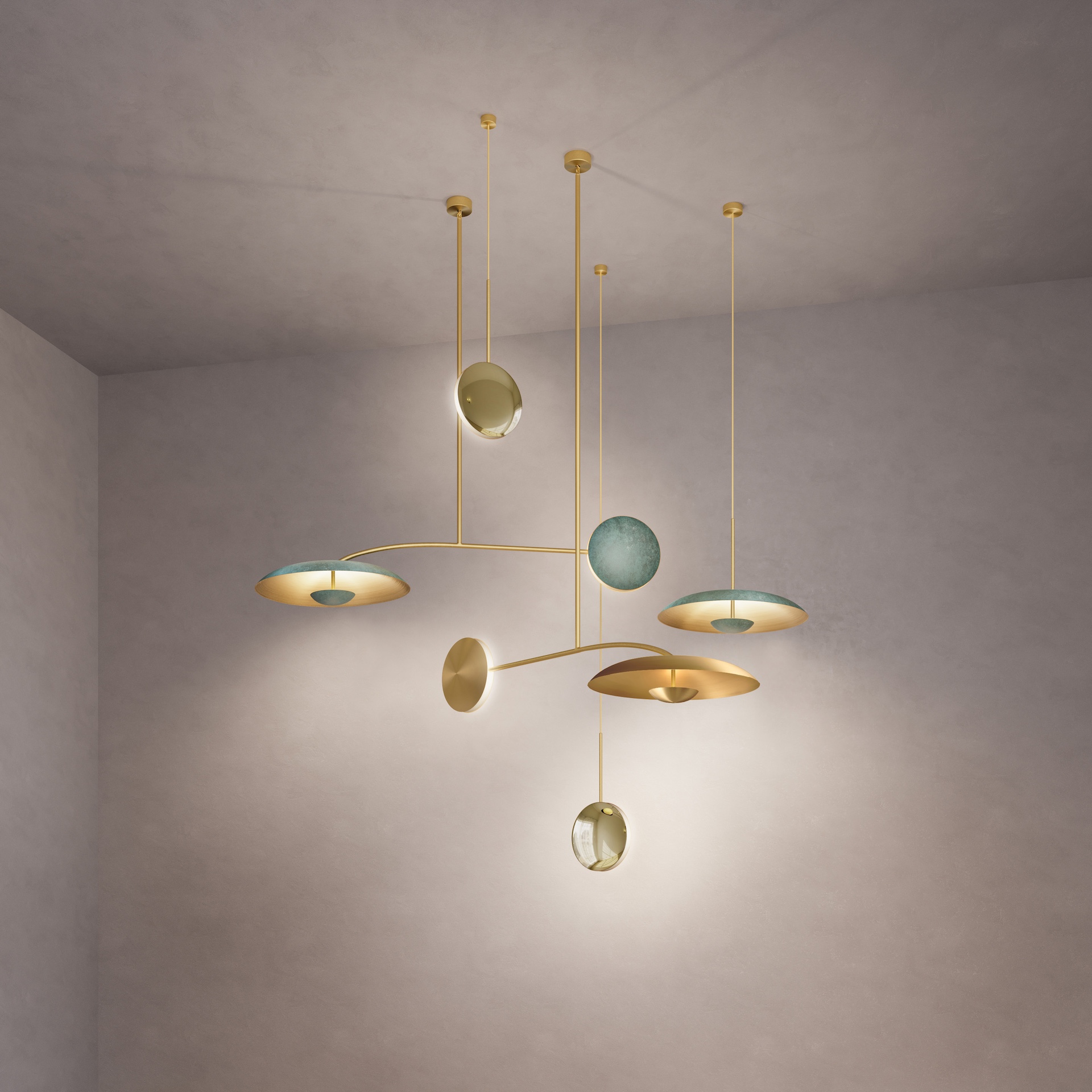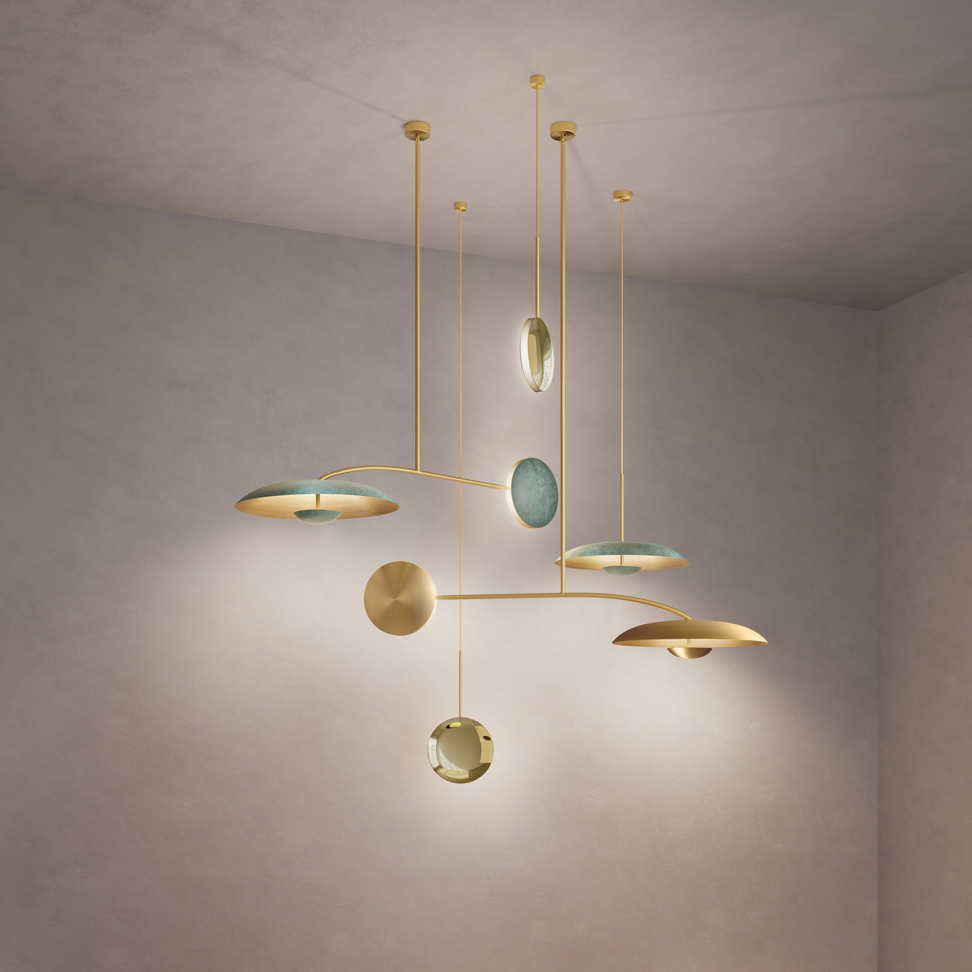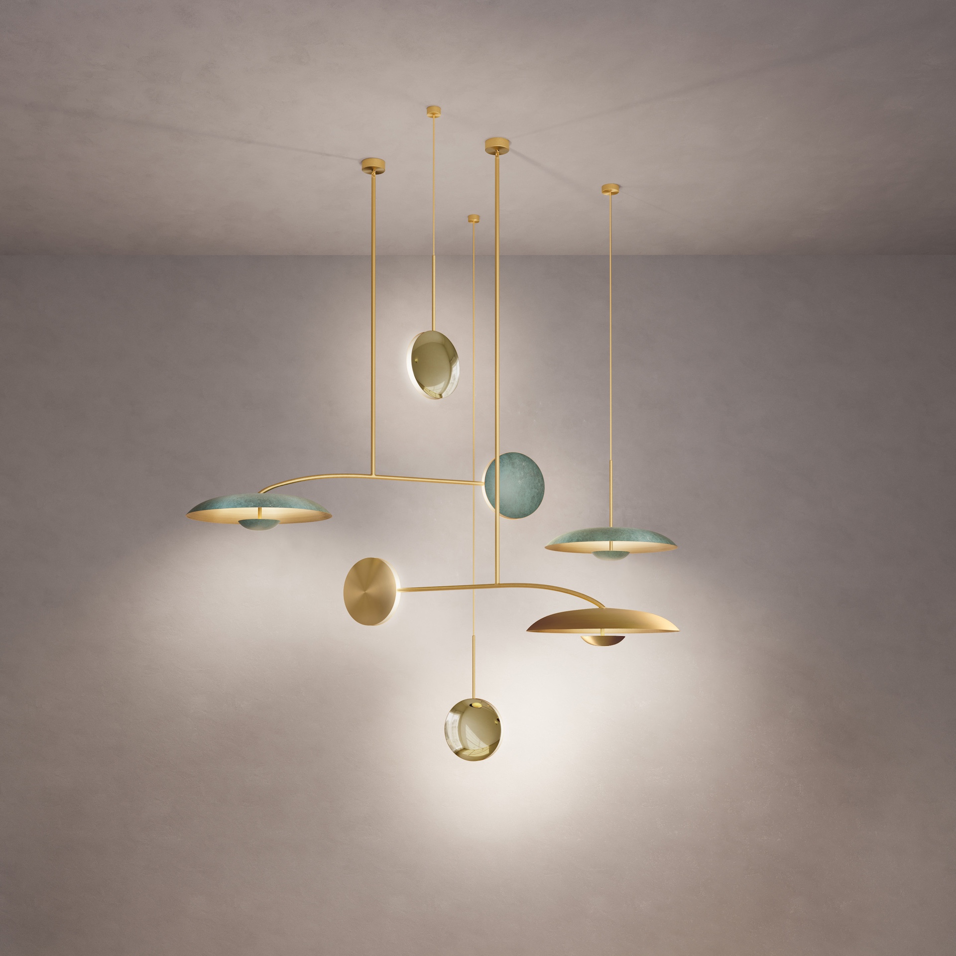 Finished in Atelier001’s signature artisan patinas, the five lighting components are harmoniously balanced to illuminate a room. This handmade lighting constellation sits elegantly in both contemporary and vintage-inspired interiors. Please note that each piece is individually handmade, therefore unique in its own way.