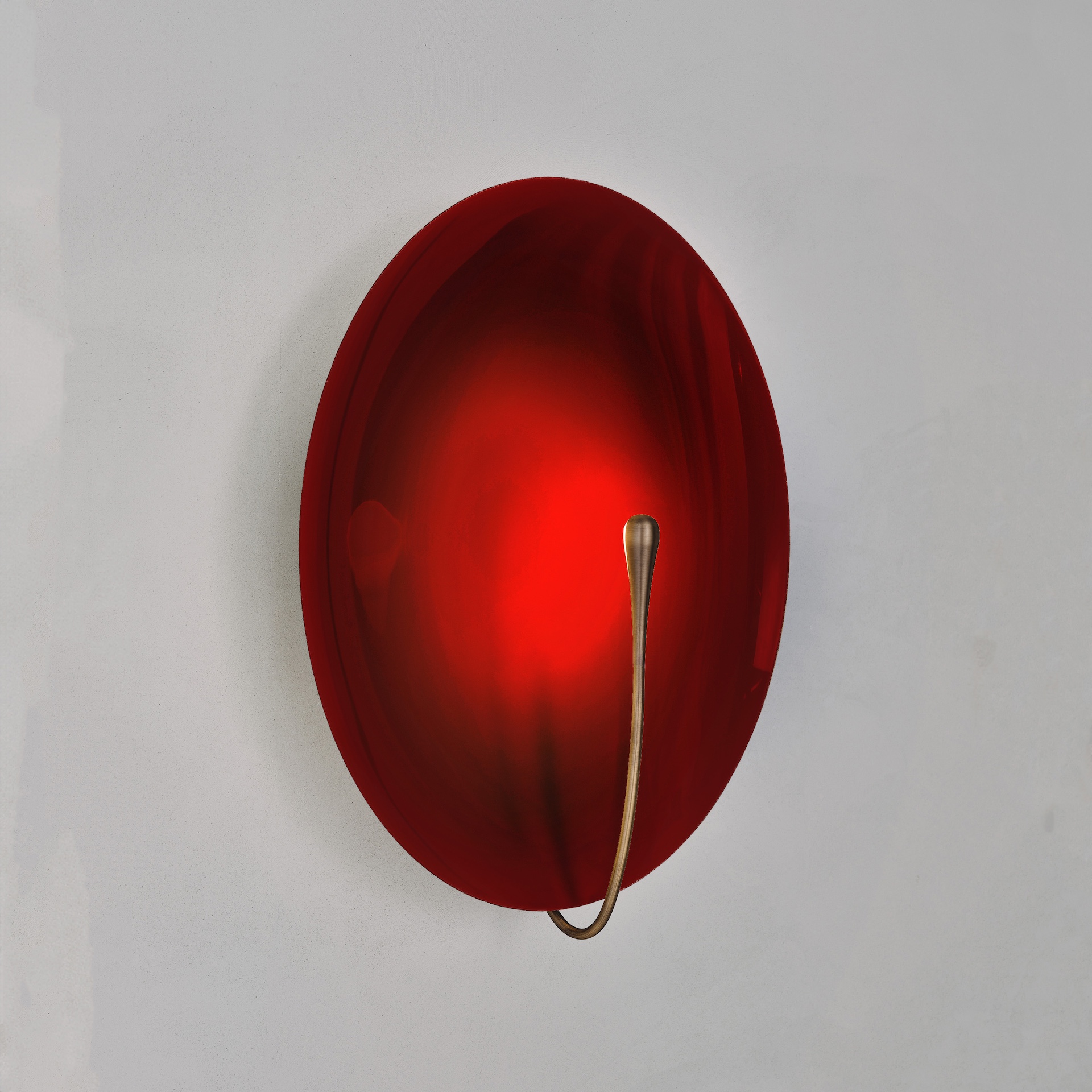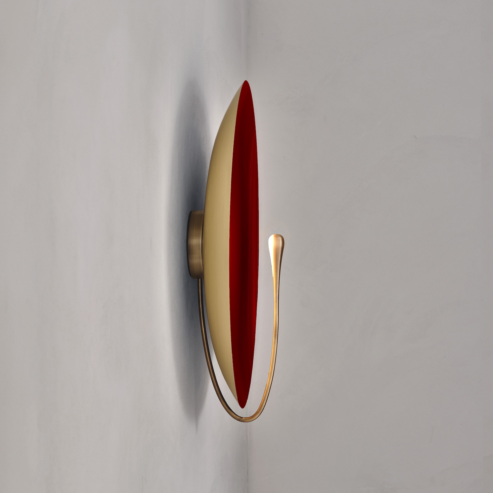 The rim and the back of the shade are finished in satin brass, whilst the inner surface is hand-lacquered in a gloss finish. Please note that each piece is individually handmade, therefore unique in its own way.