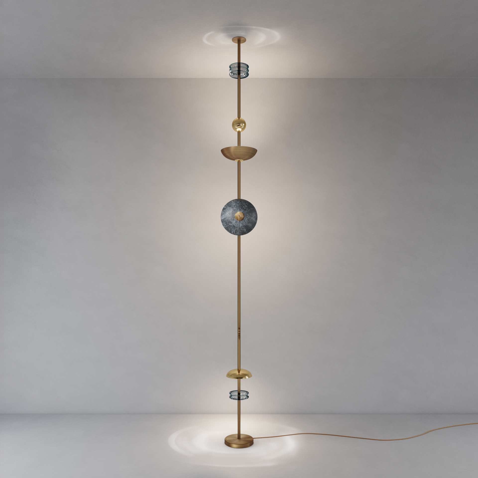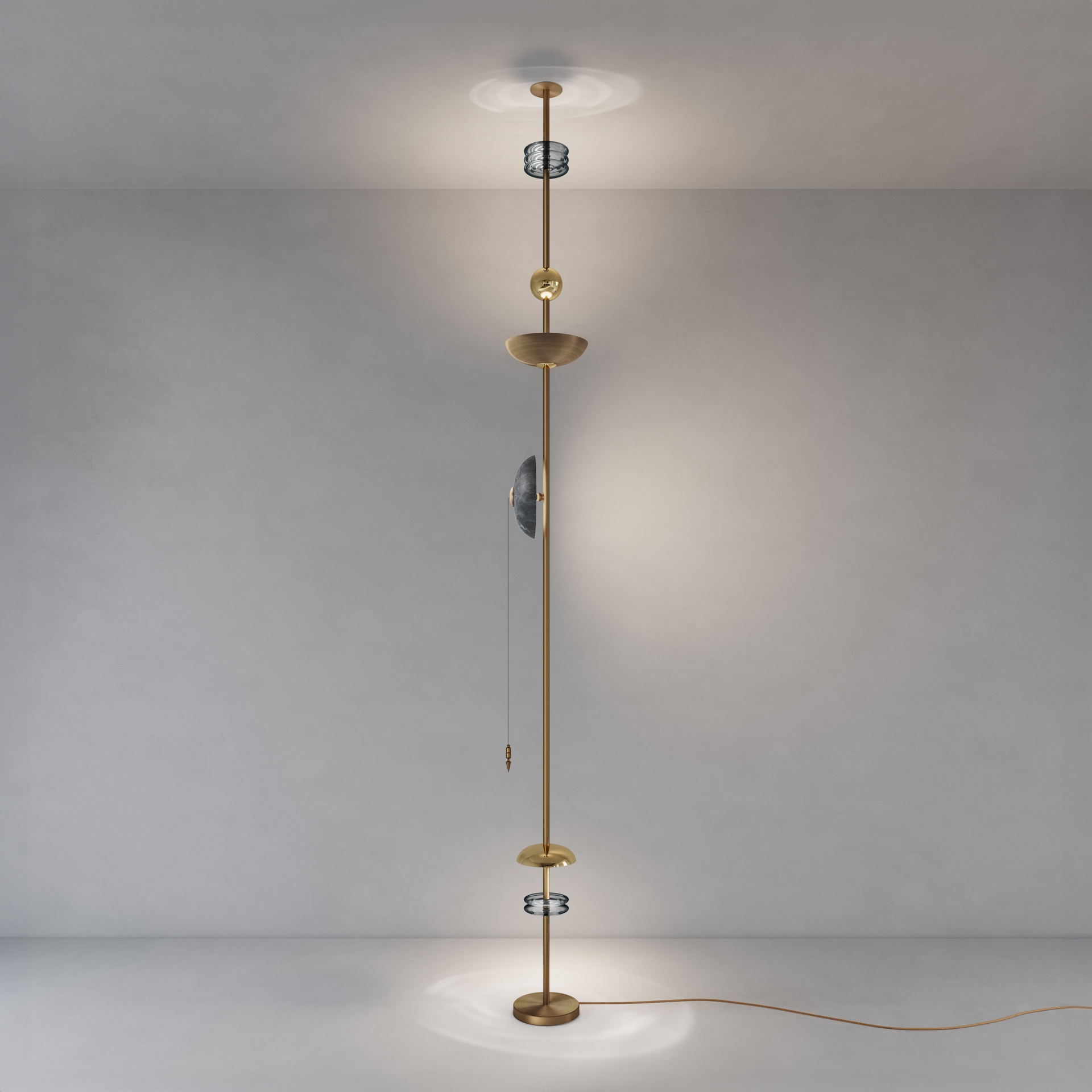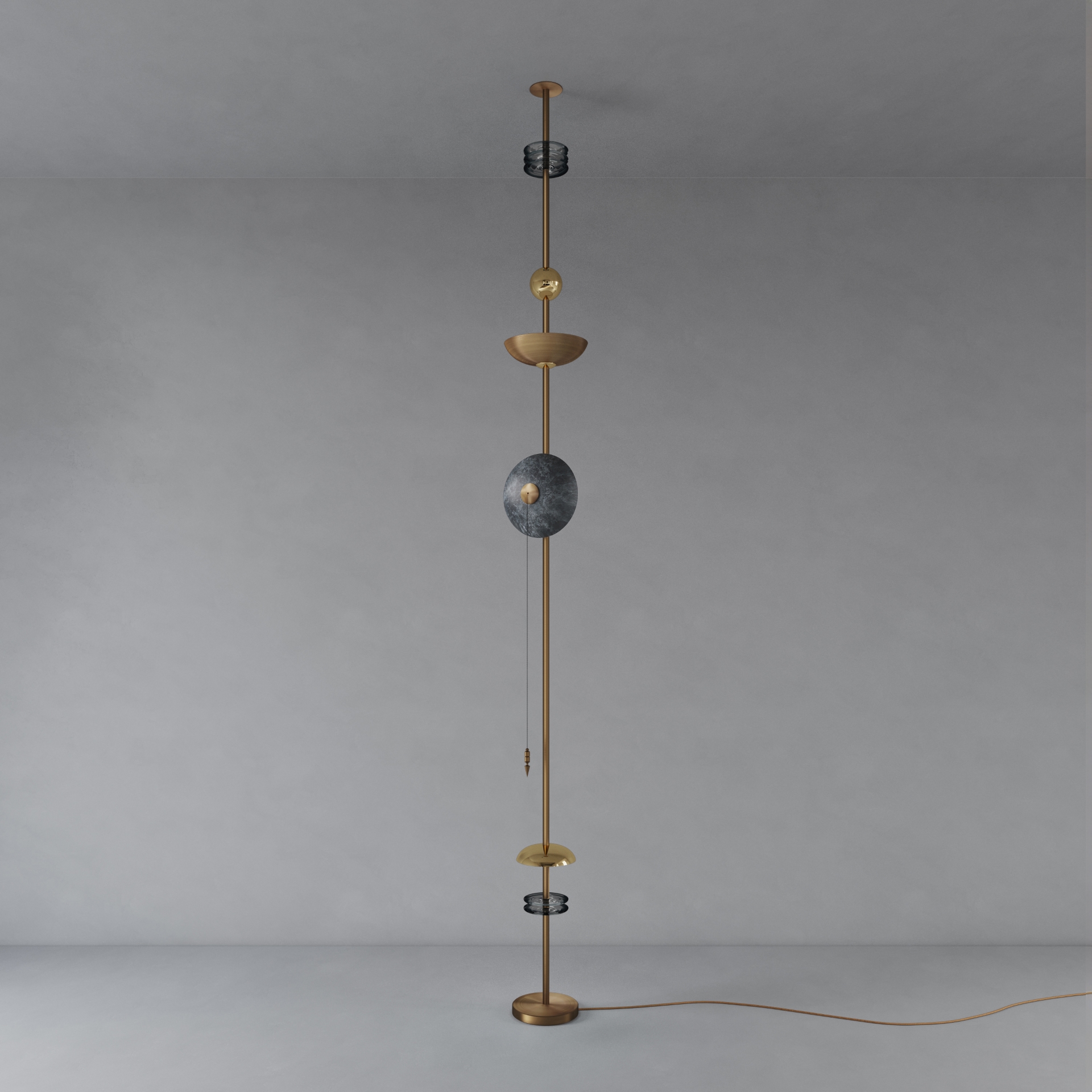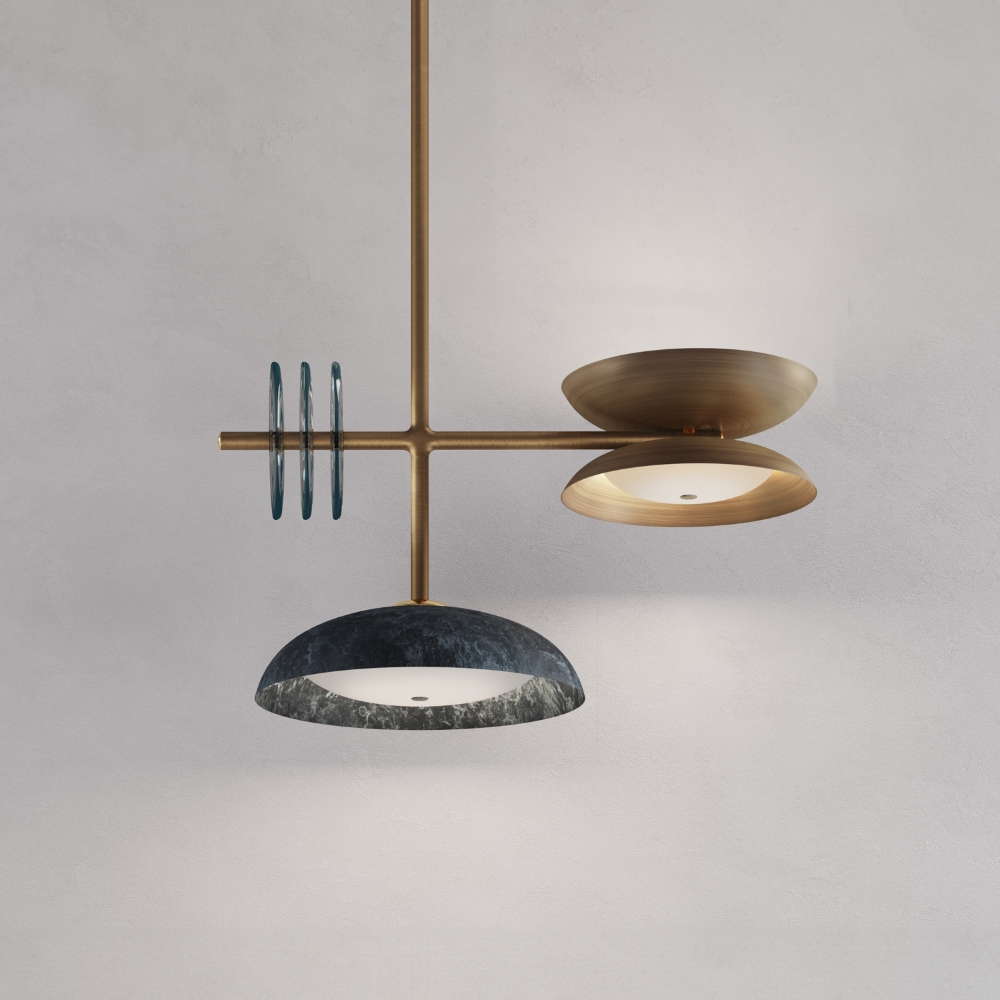 Crafted by London artisans, the designs offer a dynamic blend of materials, modern lighting and engineered components, hand-patinated metals and artisanal blown glass. Hand-spun brass elements are adorned with a heritage finishes, evoking a sense of timelessness and tradition whilst marrying beautifully with contemporary environments. The collection invites to play, combine, create little bespoke combinations that encourage individuality and uniqueness.