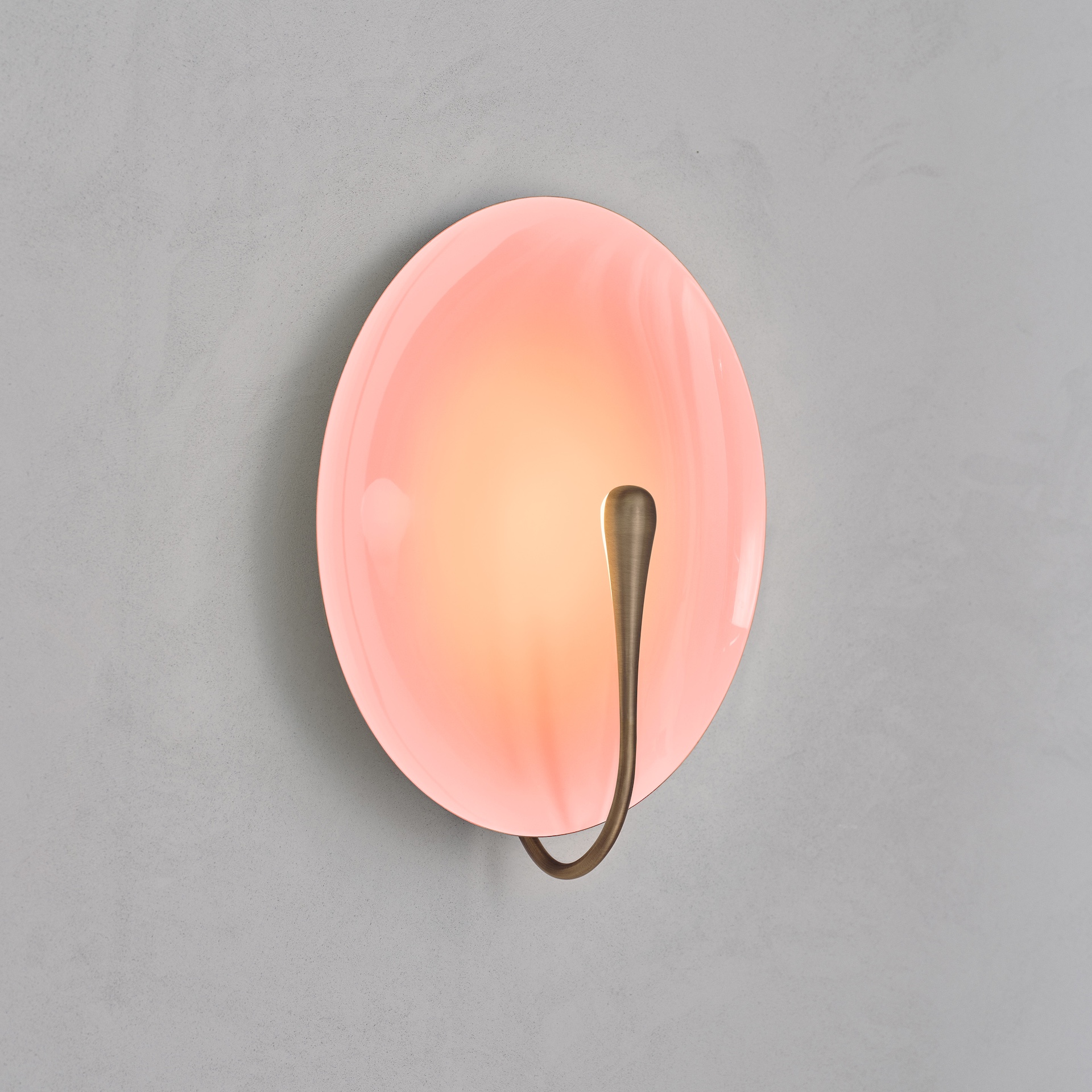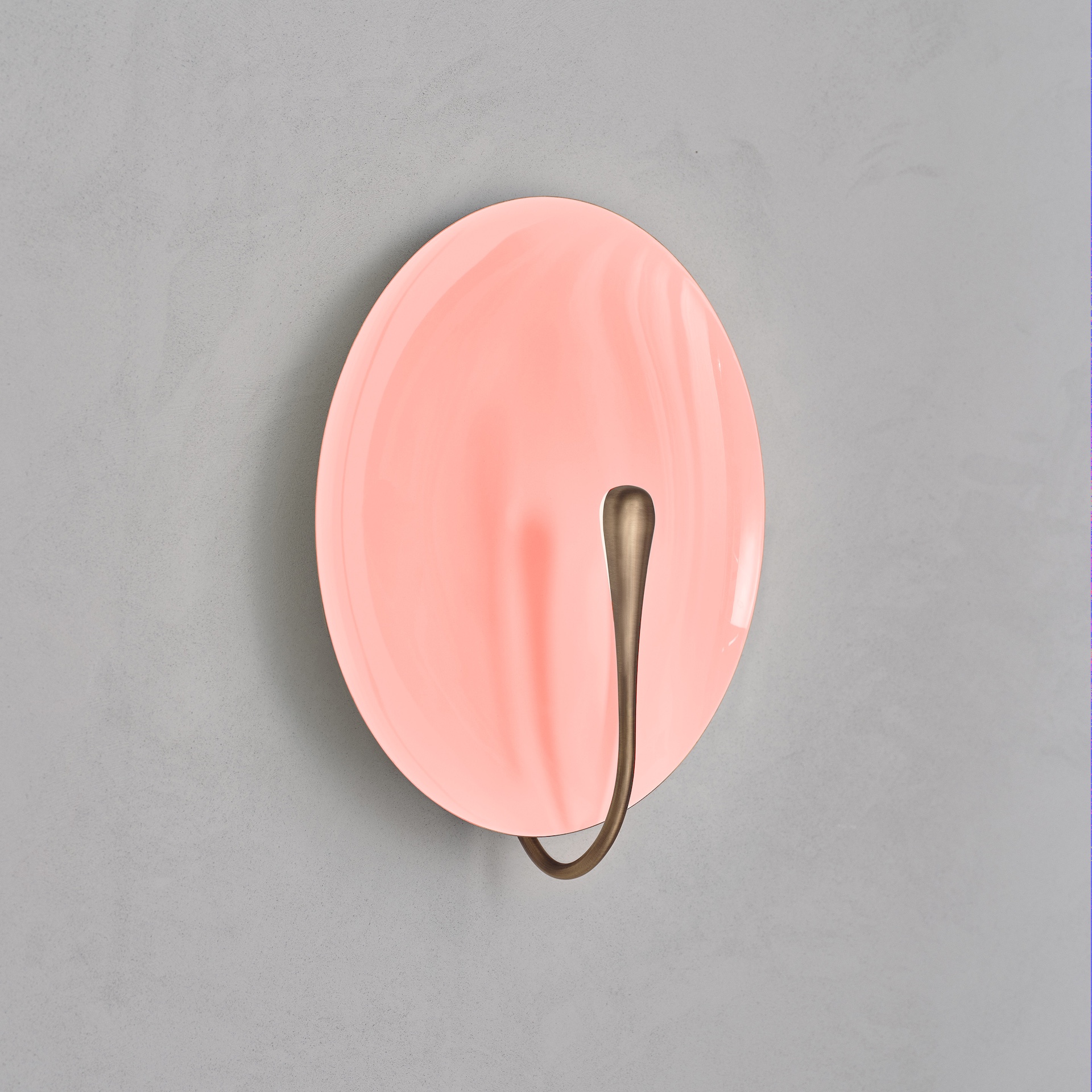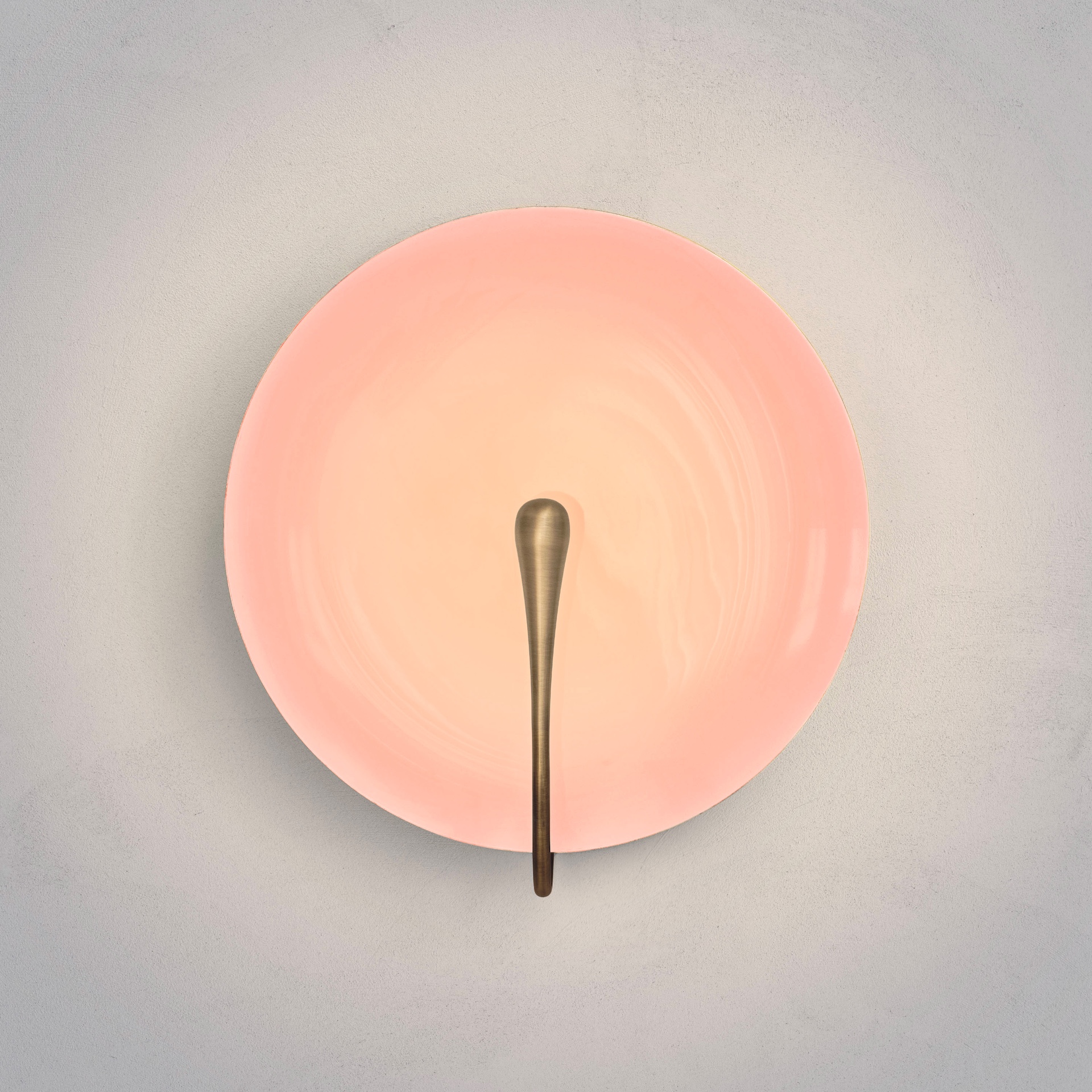 The rim and the back of the shade are finished in satin brass, whilst the inner surface is hand-lacquered in a gloss rose finish. Please note that each piece is individually handmade, therefore unique in its own way.